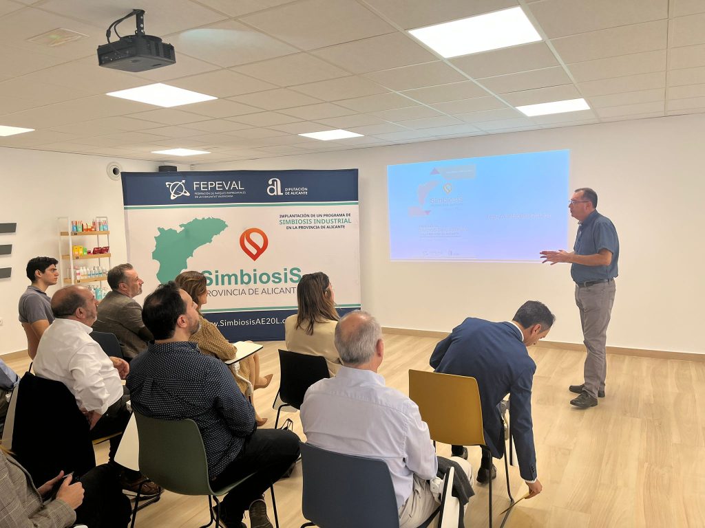 ALICANTE. La Federación de Parques Empresariales de la Comunitat Valenciana (Fepeval) y la Diputación de Alicante presentaron el pasado viernes los resultados del Programa de Simbiosis Industrial de la Provincia de Alicante en un acto celebrado en el salón de actos de Grupo Hefame en el área empresarial del Pla de la Vallonga en Alicante. Una apuesta coordinada para transformar residuos y recursos ociosos en materia prima de nuevas actividades, compartir infraestructuras y optimizar logística y energía.